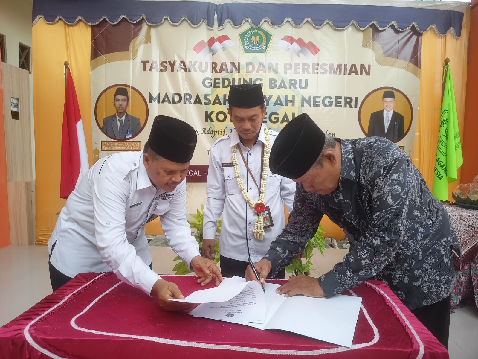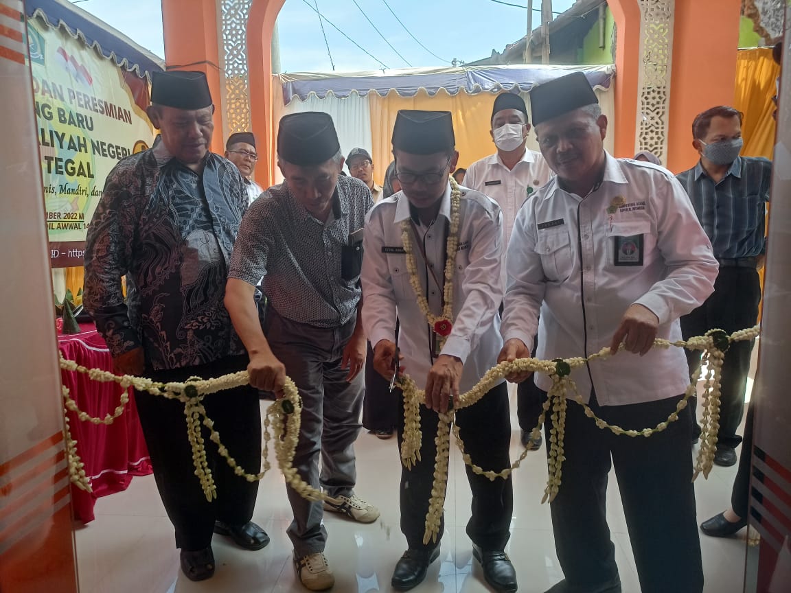 Kepala Kantor Kementerian Agama Kota Tegal, H. Fathul Himam, S.Ag., M.Pd.I di dampingi oleh Kasi Penma, Sunaryono SE, M.Si, Pengawas Madrasah, Hj. Lutfiyah Nur Rochmah, M.Pd dan Pengurus Yayasan PP. Nururrokhayah Tegal, H. dr. Moh. Edi Utomo, M.M., meresmikan gedung baru MAN Kota Tegal, Acara ini bertempat di MAN Kota Tegal pada Senin (19/12/22).